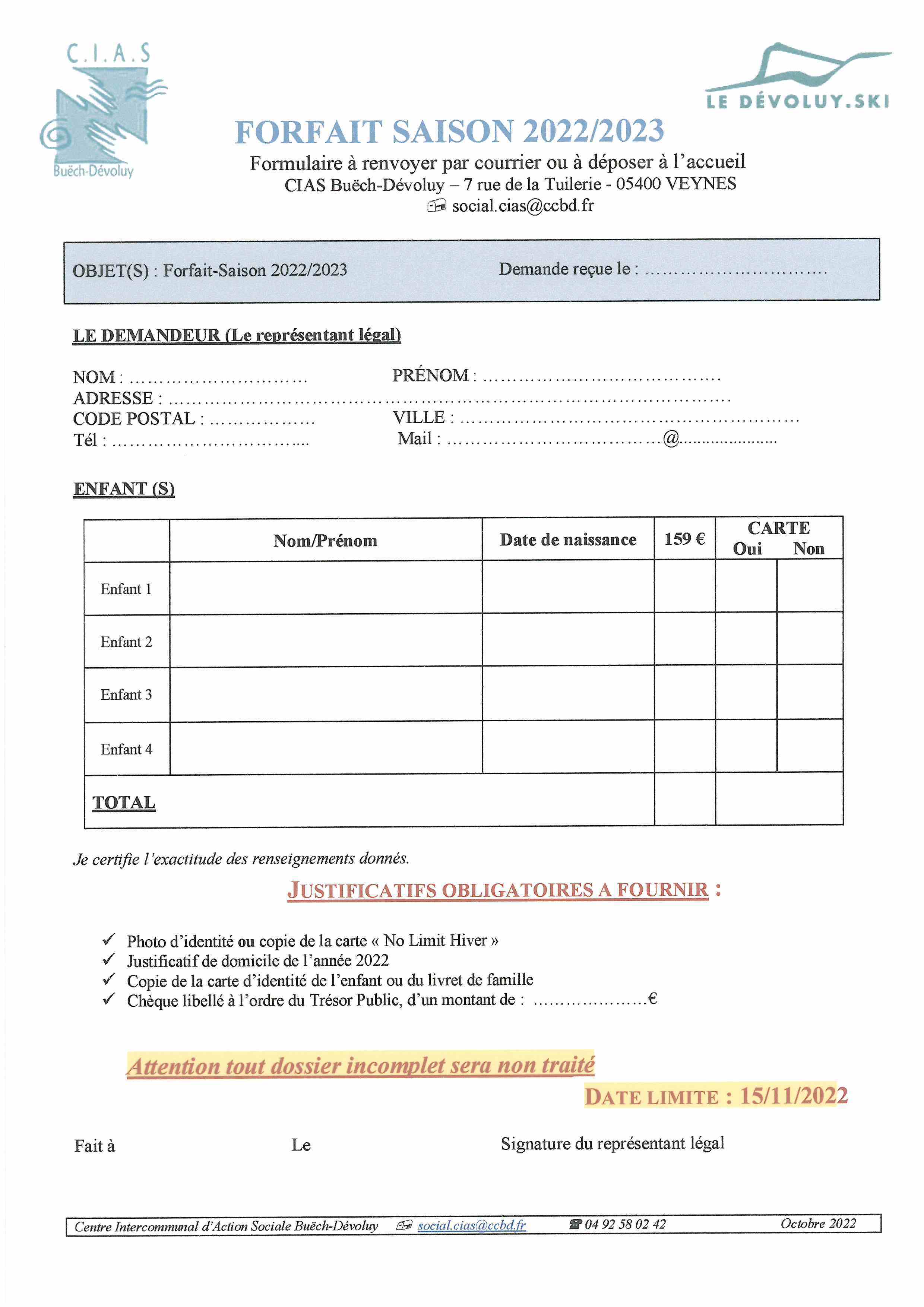 Forfait de ski 2022 / 2023 pour les - de 18 ans
